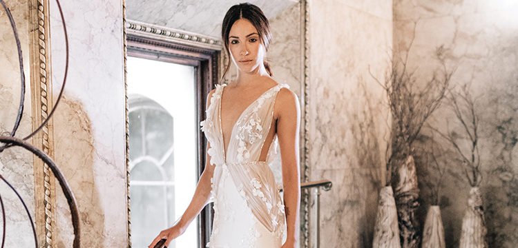 From the designer: Get ready to see the return of romantic 3D floral appliques from last season’s bridal collections and a revival of plunging necklines and bare décolletage. The theme behind this season will be “elegantly seductive” quintessential for contemporary brides looking to make their bridal fantasies come to life.